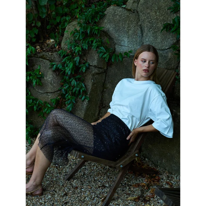 Sequined Lace Midi Half Lined Zipper Closure Product: Sequined Midi SkirtDesigner: JusteProduct Code: 2024-829_181834This product will be sent by Juste on behalf of hipicon
