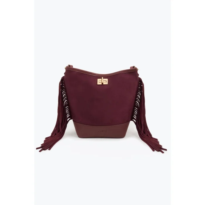 Reflecting Juste's elegant touch with its soft suede texture and flowing silhouette, the suede tasseled bag adds value to the style with its perfect simplicity.