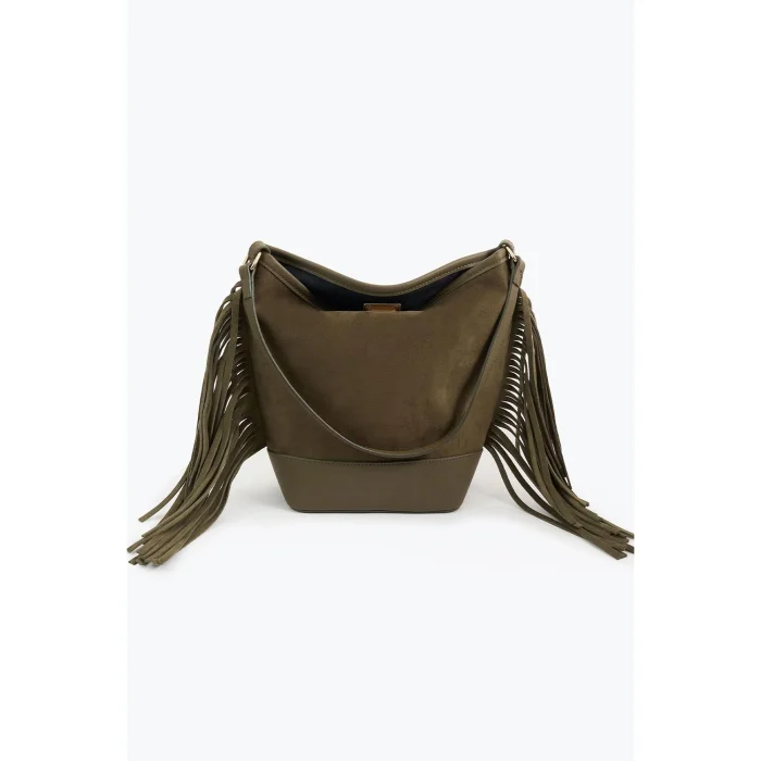 Suede Tassel Shoulder Bag Khaki