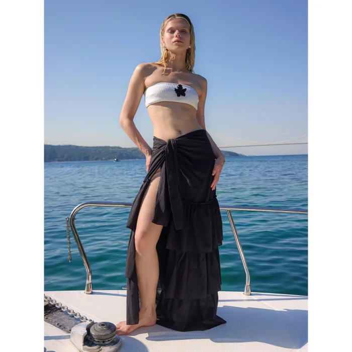 Side Tie Layered Skirt, which will accompany coastal walks or a stylish boat tour accompanied by the sunset, offers an elegant and free style. Thanks to its light and fluid fabric, it hugs the body without disturbing it and provides an adjustable use with its side tie detail.