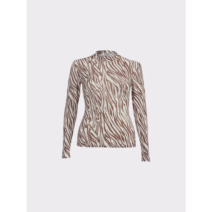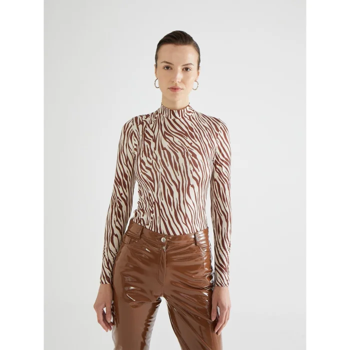 Product: Zebra Pattern Turtleneck Brown Bodysuit