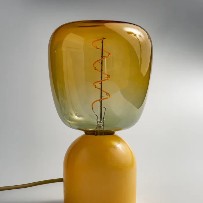 • Designed table lamp with handmade concrete pedestal and glass hat selected in special color