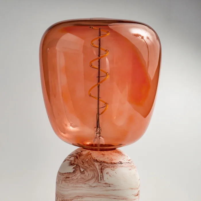 • Designed table lamp with handmade concrete pedestal and glass hat selected in special color