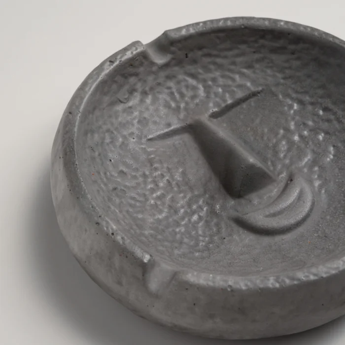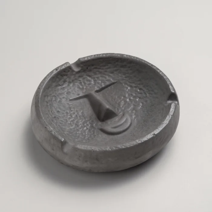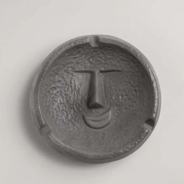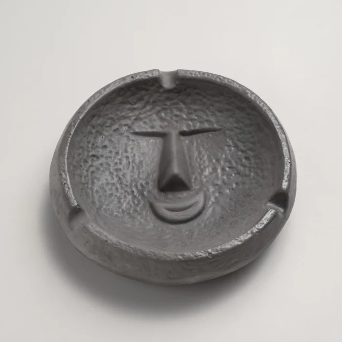 Attracting attention with its smiling face figure, this circular ashtray combines functionality with a playful detail.