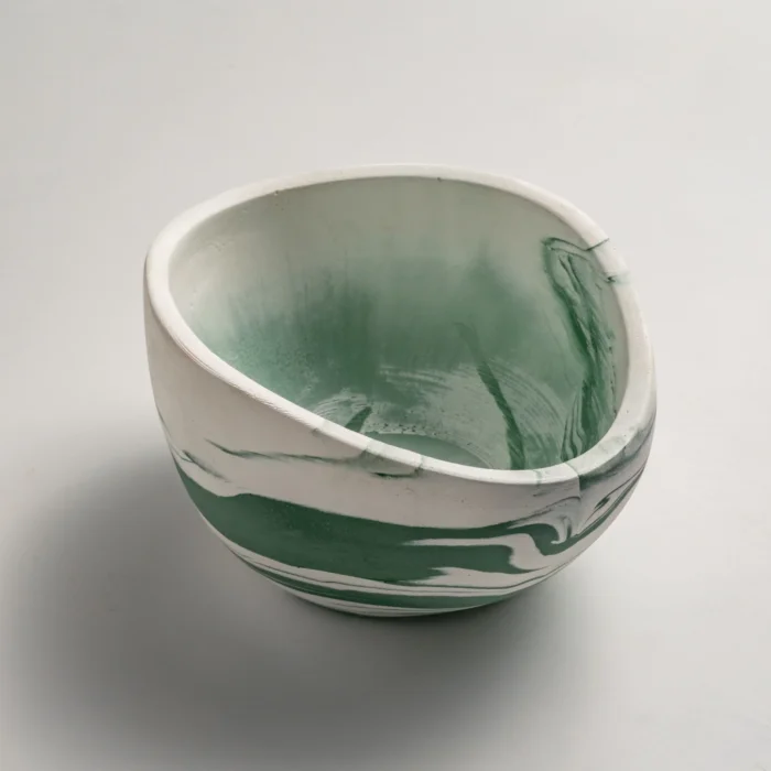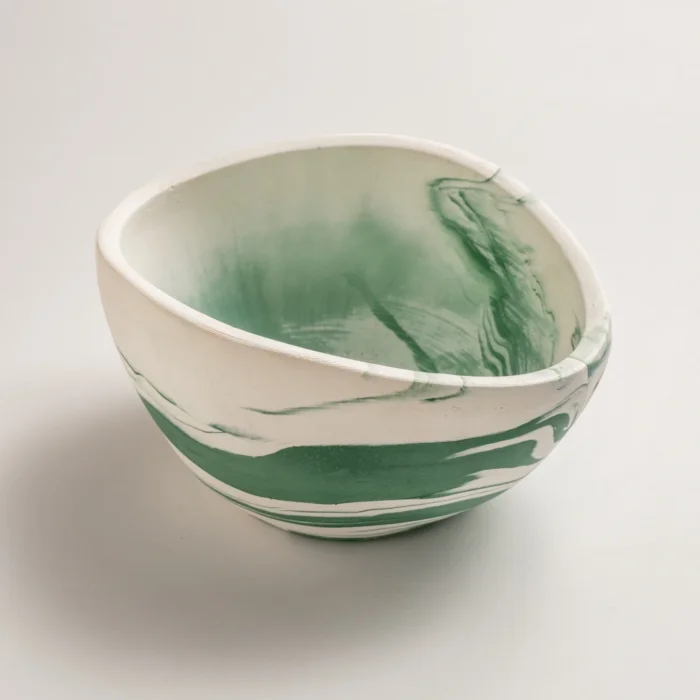 Handmade, asymmetrical designed, this concrete bowl is both an aesthetic object and a versatile helper. This product, each of which becomes unique by pouring with special color transitions, has functional usage areas as well as decorative purposes.