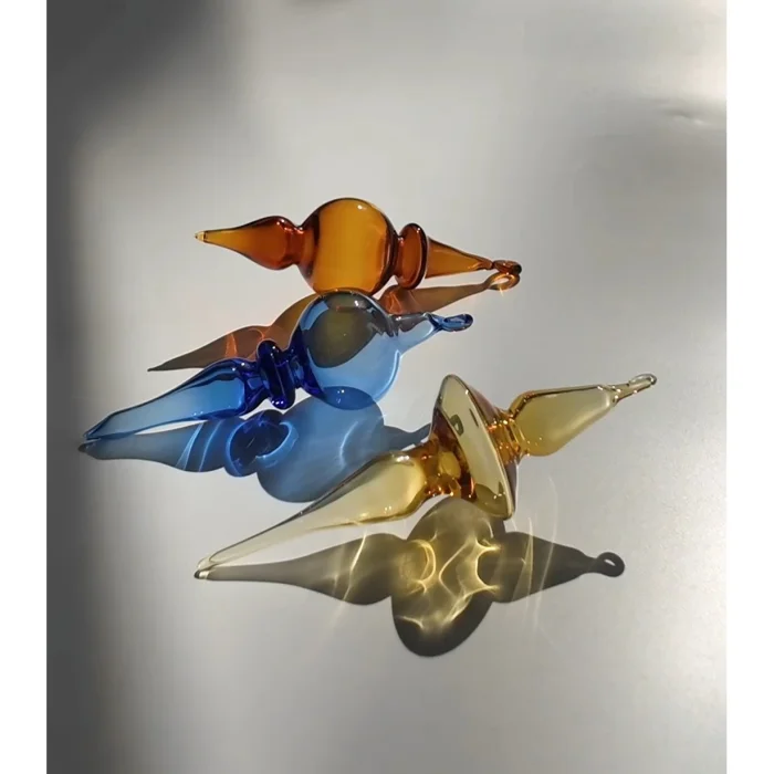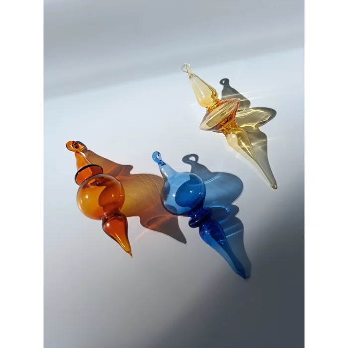 Those are hand blown glass ornaments. Each one is light, not heavy because they made by borosilicate glass blowing technique. You can hand them on your christmas tree or wall ets..