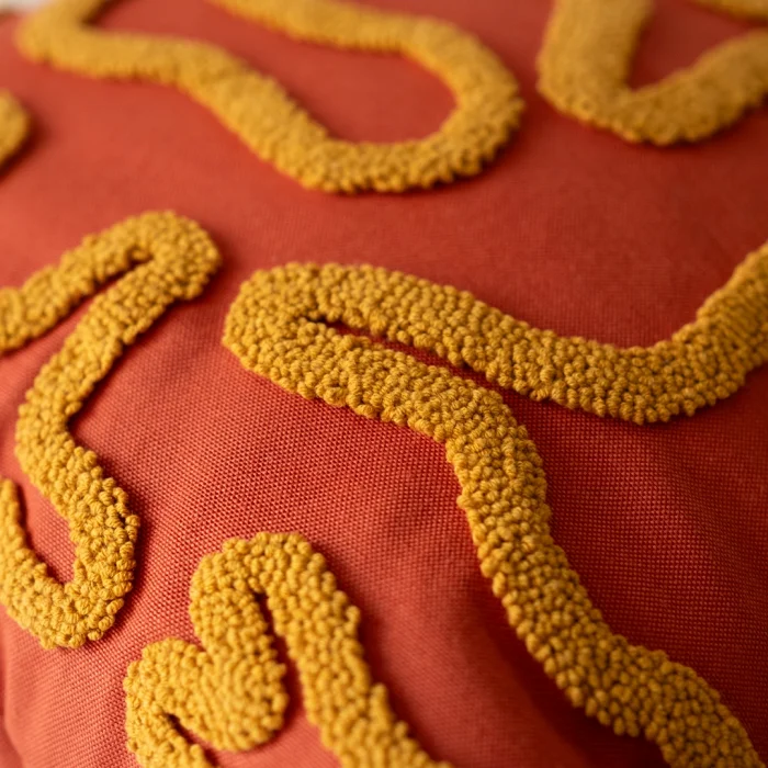 Pillow in the Flow is this feeling itself. It offers both a natural and modern look with its striped pattern embroidered with velvet threads on linen fabric with punch technique. With its handcrafted texture, it adds warmth to every corner and carries a relaxing energy.