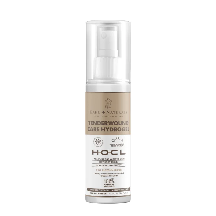 Kahu Naturals TenderWound Care Hydrogel, a wound and skin care gel produced with hypochlorous technology that is pH balanced and does not cause irritation, can be used safely in all life stages of cats and dogs, including the mouth, nose, ears and around the eyes.