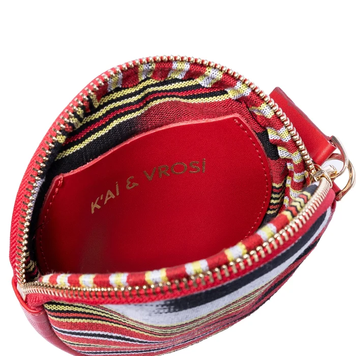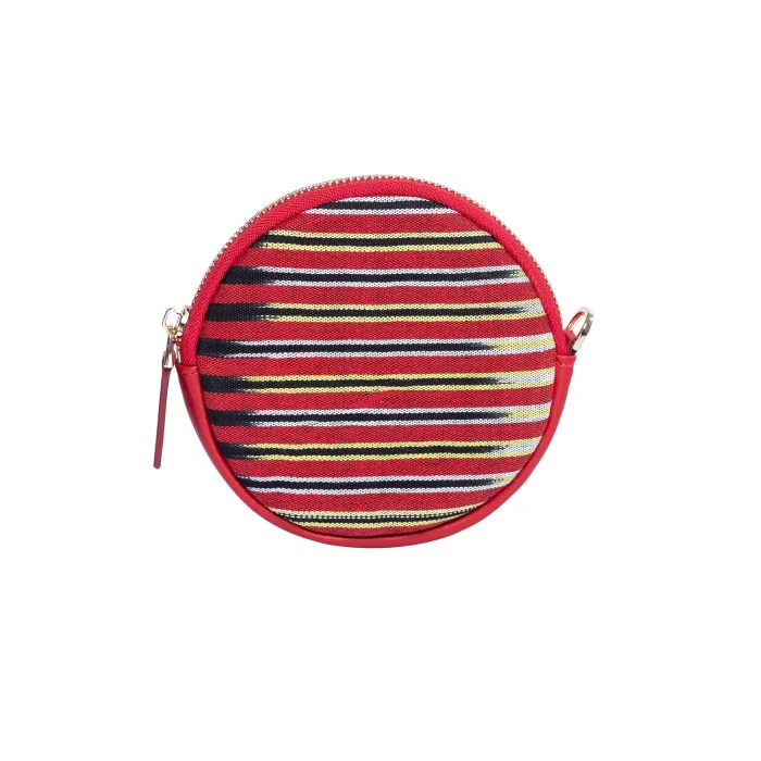Product: Cona Leather Round Purse With Handloomed Peshtemal