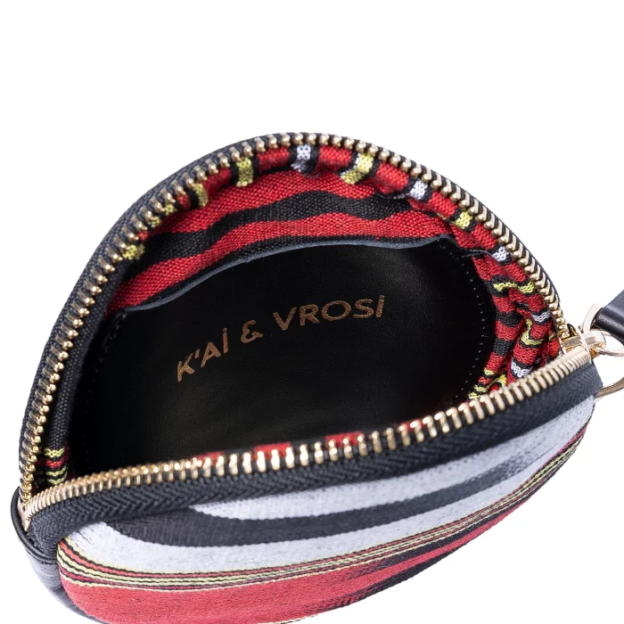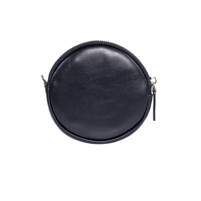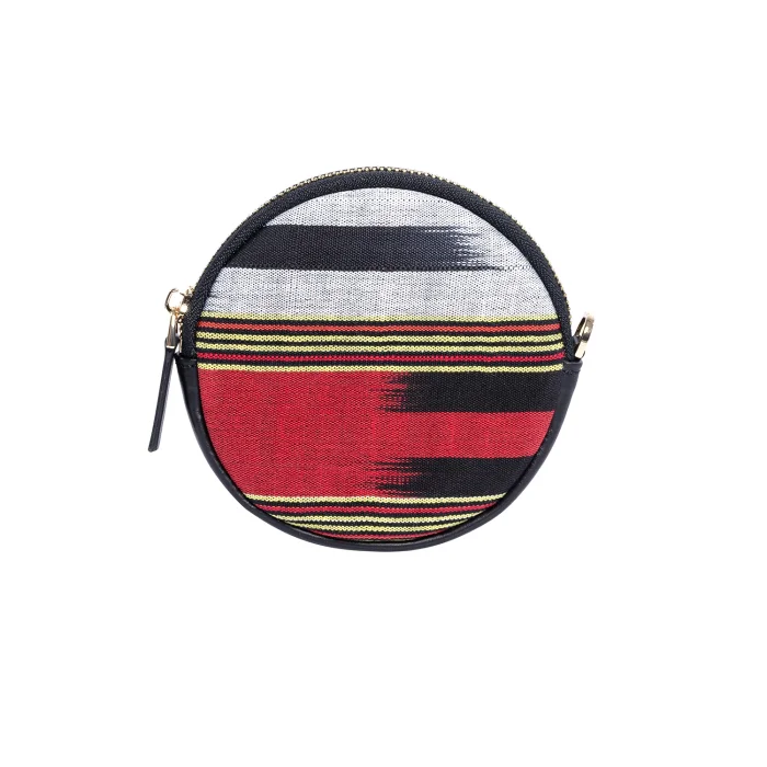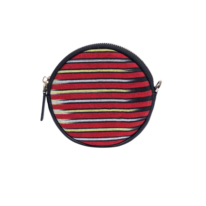 Product: Cona Leather Round Purse With Handloomed Peshtemal