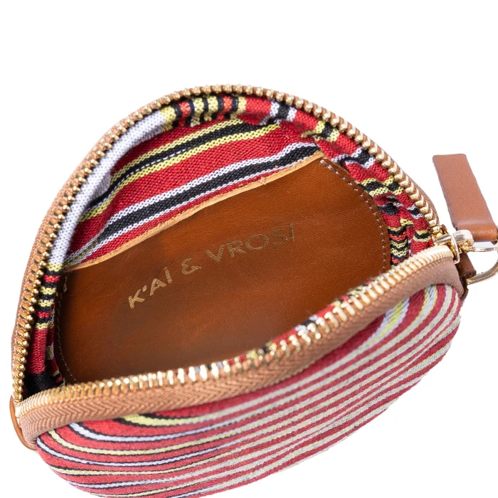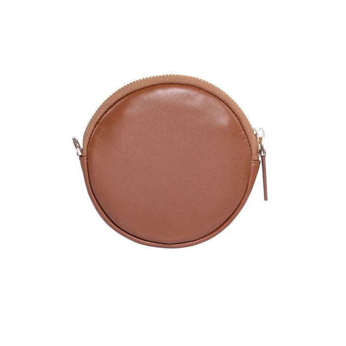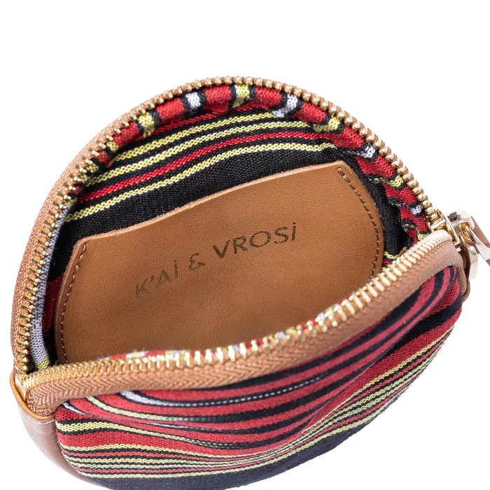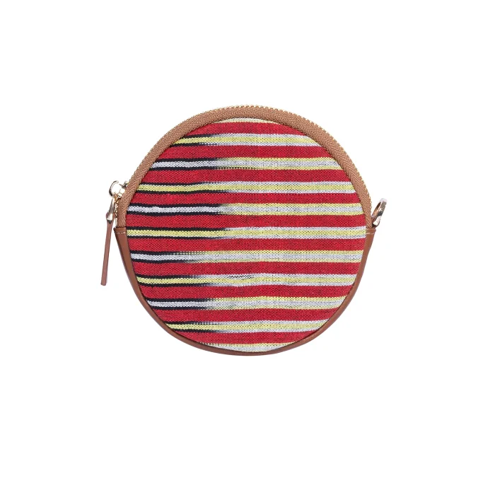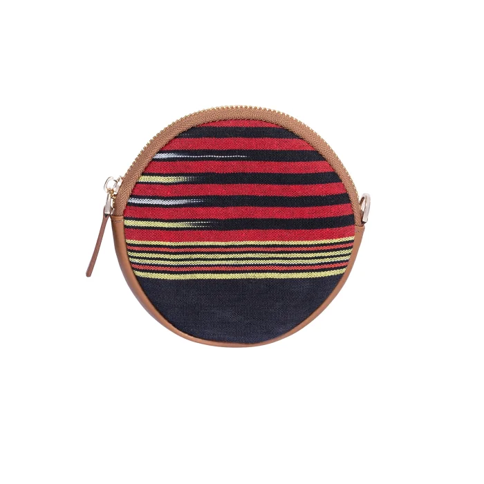 Product: Cona Leather Round Purse With Handloomed Peshtemal