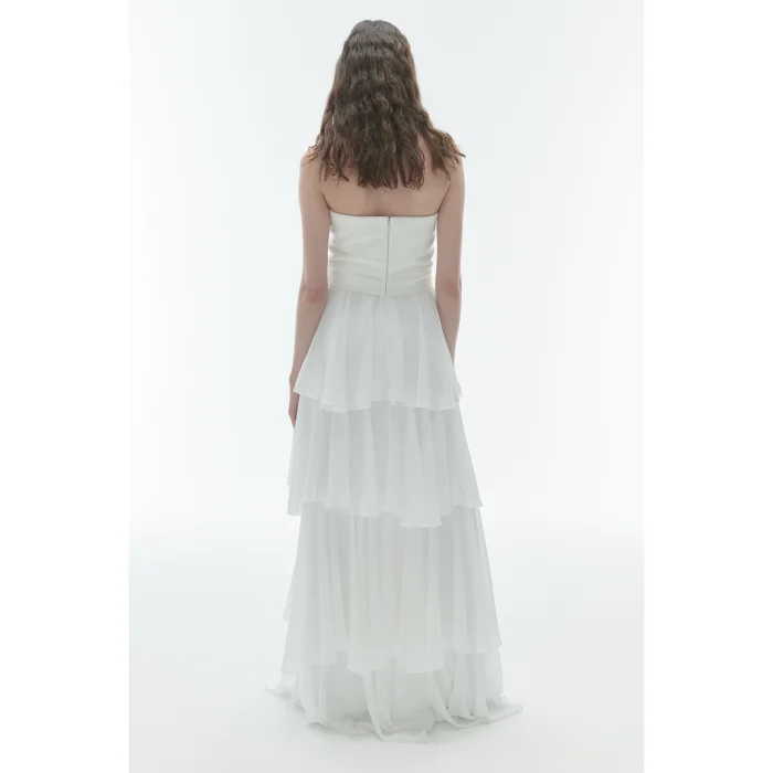 Long dress with strapless ruffle details.