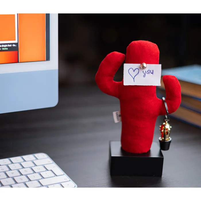 It comes with a pen holder, an organizer and a cactus note holder. Since wood is a natural material, it can show pattern and color differences.