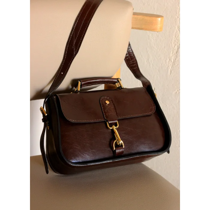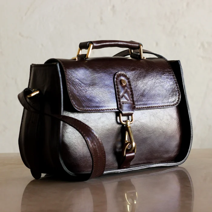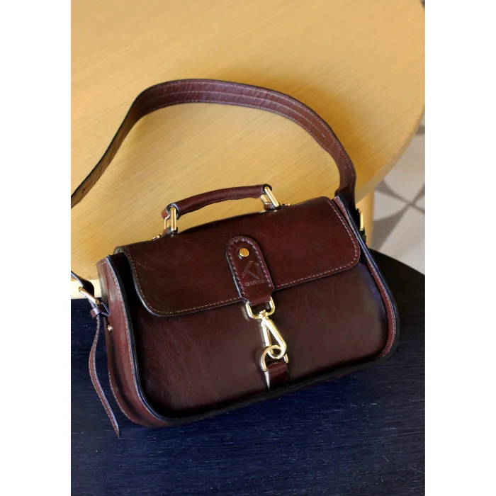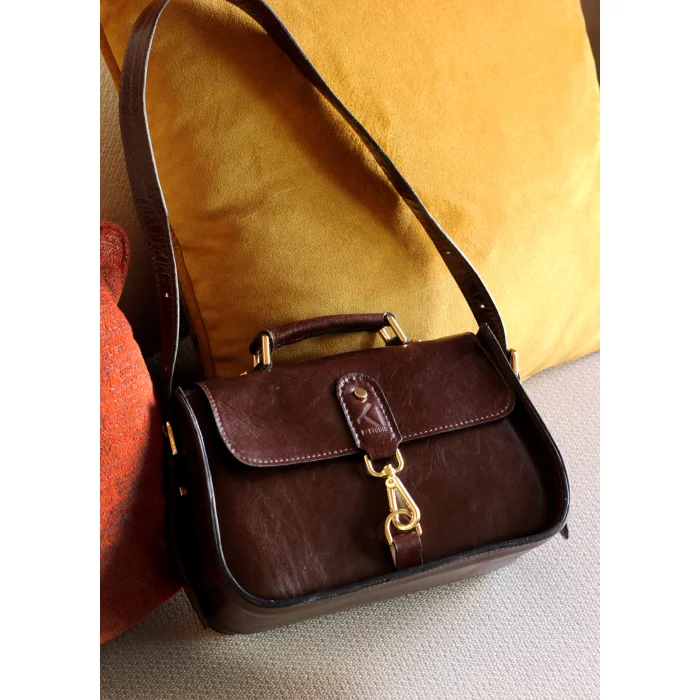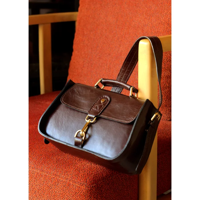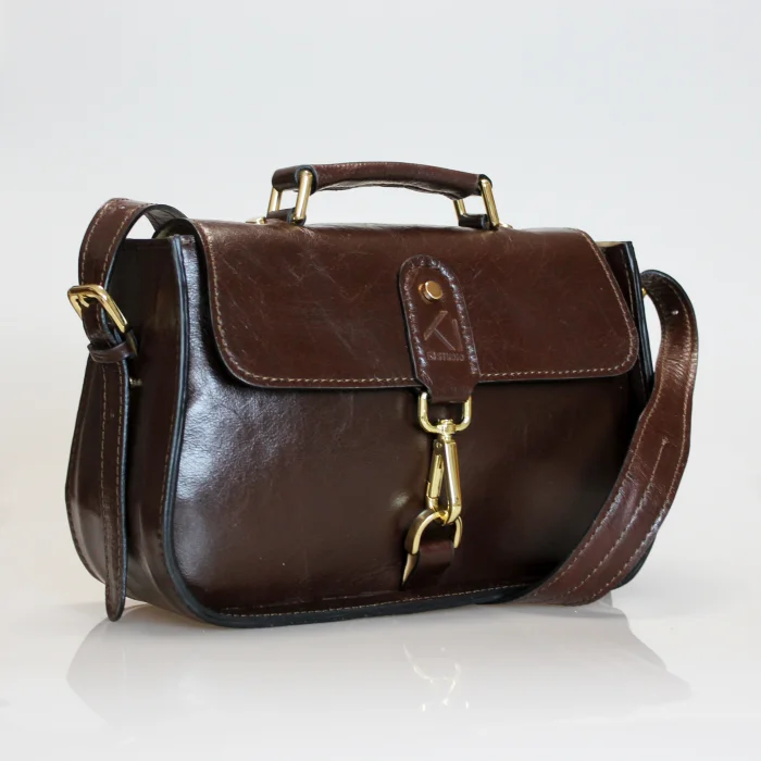 Material Used: Genuine calf leather, high quality metal accessories in light gold color and polyester waxed rope. Dimensions: Width 27 cm, Length 20 cm, Depth: 11 cm.