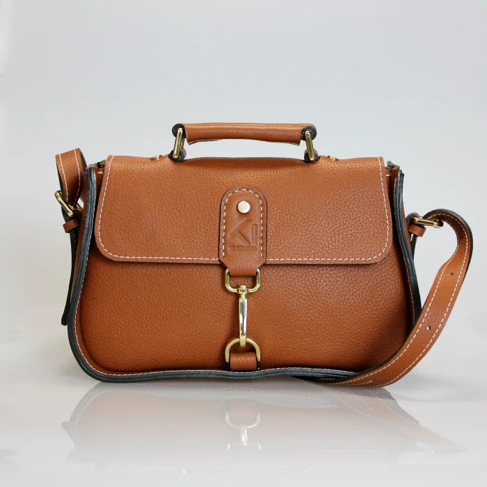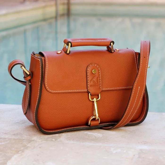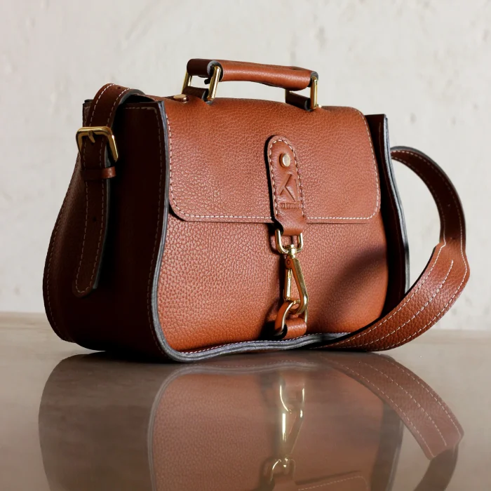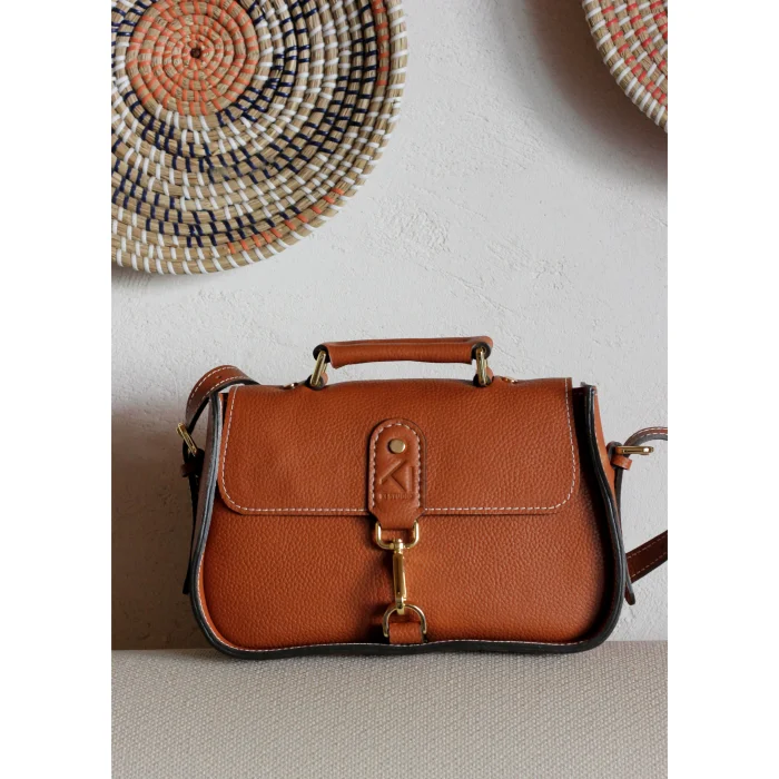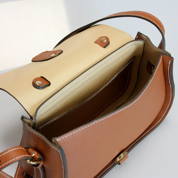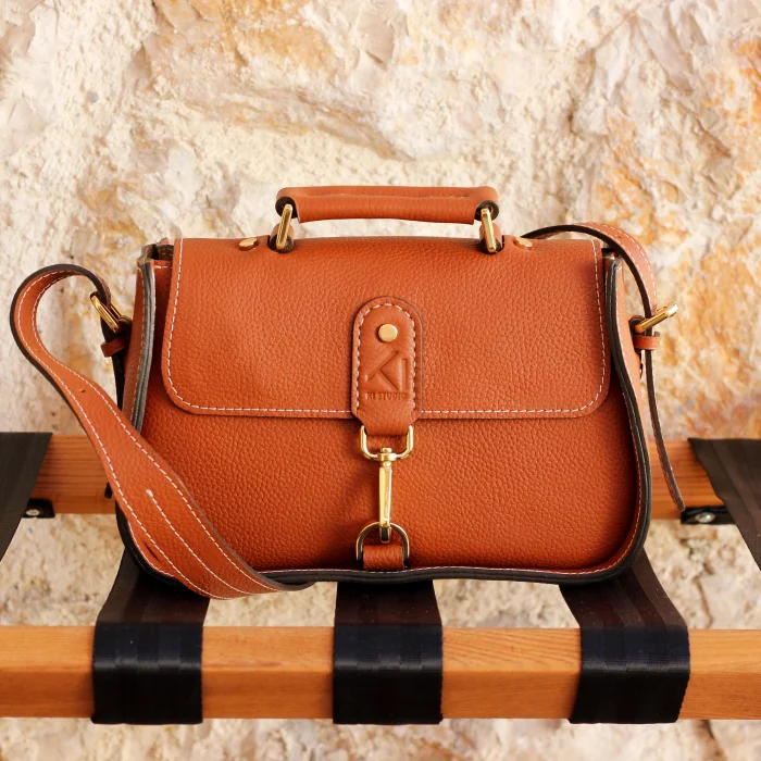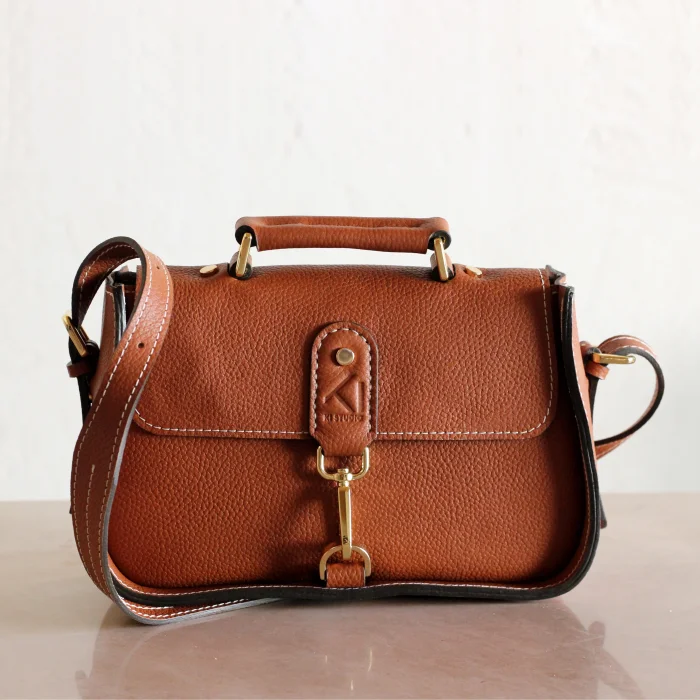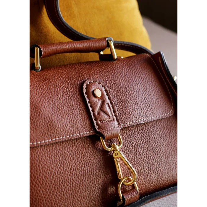 Material Used: Genuine calf leather, high quality metal accessories in light gold color and polyester waxed rope. Dimensions: Width 27 cm, Length 20 cm, Depth: 11 cm.