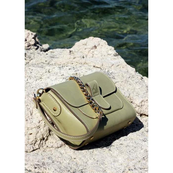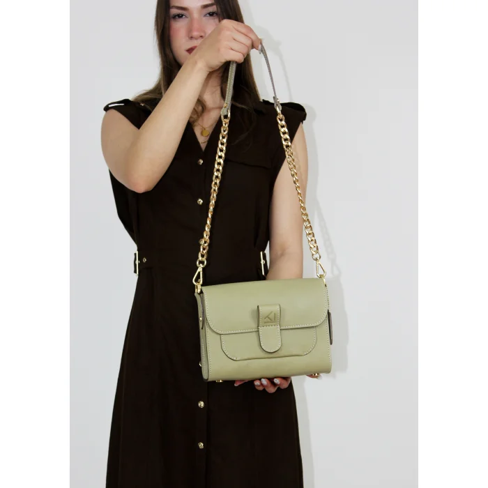 Merry Handbag is a bag that is produced with high quality calf leather and calf lining, offers a comfortable use with its magnetic cover design, and has alternative ways of use with its replaceable short shoulder and hand handle, as well as long chain detailed handle options. It has a functional use with the pocket detail in its interior design. Eye-catching stylish details have been captured with the high quality light gold colored metal accessories used in its design.