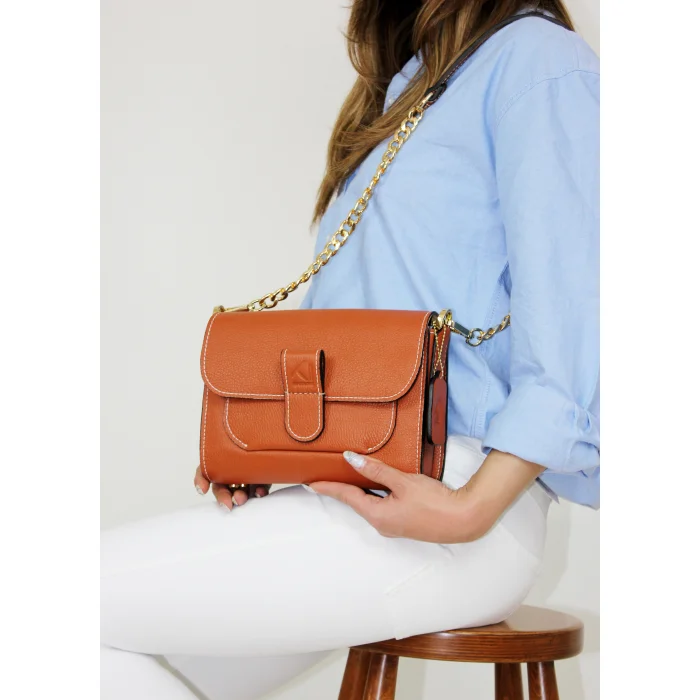 Merry Handbag is a bag that is produced with high quality calf leather and calf lining, offers a comfortable use with its magnetic cover design, and has alternative ways of use with its replaceable short shoulder and hand handle, as well as long chain detailed handle options. It has a functional use with the pocket detail in its interior design. Eye-catching stylish details have been captured with the high quality light gold colored metal accessories used in its design.