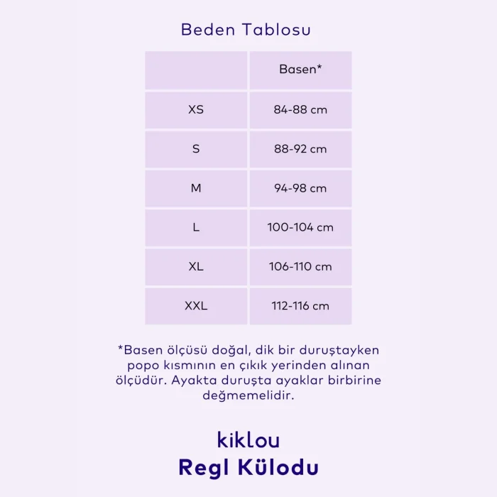 This absorbent, waste-free, anti-odor and comfortable menstrual panties with a liquid-proof layer are designed with advanced textile technology to wear on busy days of your period It provides protection equivalent to 3-4 normal pads or 4-5 normal tampons, it feels dry. It can be machine washed and worn for years. Fabric Components: Inner Fabric Touching the Skin: 100% Organic Cotton Mesh Top Fabric Touching the Skin: 95% Polyester, 5% Elastane Network Interfaces: 100% Polyester, PU-Membrane Outer Fabric: 80% Polyamide, 20% Elastane. Kiklou products are in the category of personal hygiene products. As stated in the Hipicon and Kiklou return policies, due to health and hygiene conditions, opened menstrual panties cannot be returned or exchanged.