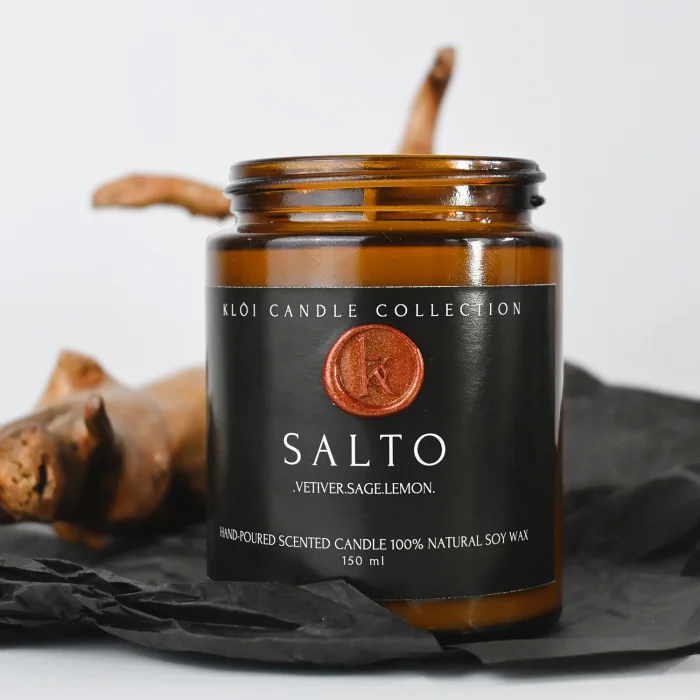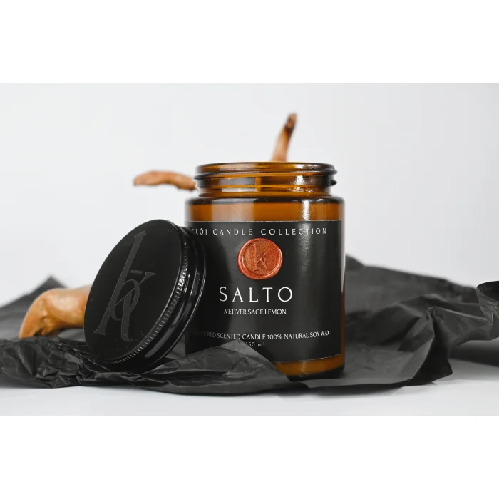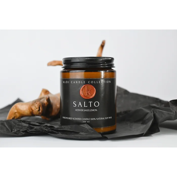 Salto is designed with fresh and grounding notes that create a clean, balanced atmosphere. The opening of sage and lemon zest blends with a cool ocean breeze, while vetiver, myrrh, and sandalwood anchor the scent with a calm, earthy finish.