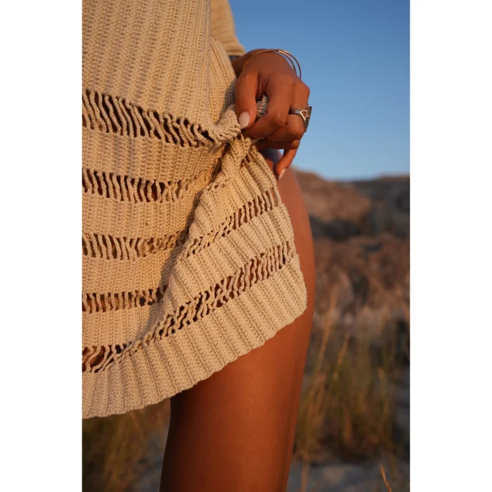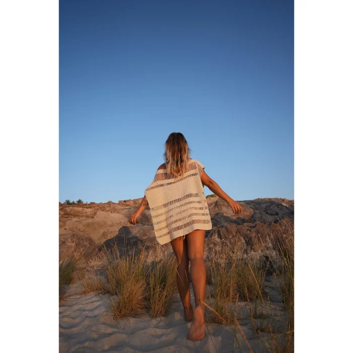 The boatneck design adds a modern and feminine touch, while the off-the-shoulder silhouette allows you to carry the summer breeze on you.