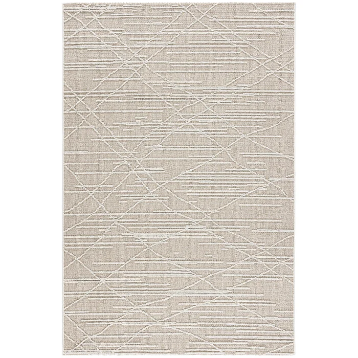 - The rug blends seamlessly into any environment with its soft tones of cream and beige.