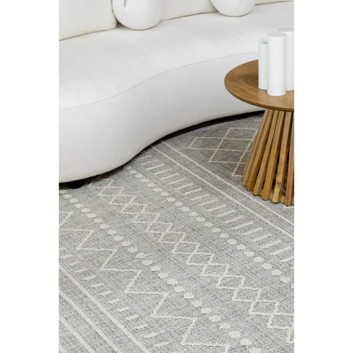 • The rug blends seamlessly into any environment with its soft tones of cream and beige.