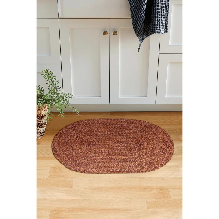• Crafted from a blend of jute knit material and cotton, this rug exudes an energy that instantly enlivens your space. The rich tile color adds warmth and depth to your floor, creating an inviting focal point that complements various interior styles. Measuring 50x80 / 80x120 cm, it offers comfort for your feet while providing a versatile canvas for your creativity.