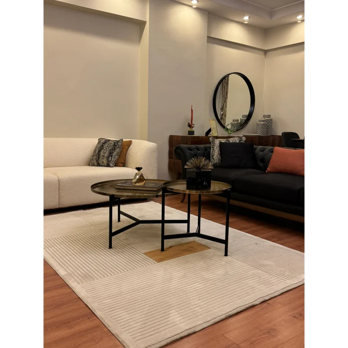 Farahan Cream Cinnamon Geometric Dustproof Living Room Hallway Balcony Terrace Garden Living Room Carpet A0859A Farahan carpet with high quality polypropylene and polyester content offers a soft and comfortable feeling under your feet. The Farahan Collection has been carefully designed with a strong harmony of cream-cinnamon colors that complement any décor and its calm appearance. This collection, which is also aesthetically eye-catching, is designed to add an elegant touch to your living spaces. Farahan Collection, which reflects a minimal style with its calm, linear, modern, flat weaving; It will create an elegant and stylish ambiance with its functional structure compatible with all decorations. Ideal for those looking for decoration, comfort and simple elegance in their living spaces. It is suitable for indoor use in the living room, living room and bedroom. This rug brings dynamism and freshness to your room, while at the same time creating a luminous accent on the floor. With its stylish design and high-quality materials, it provides a visually pleasing appearance and offers a long-lasting use. Beautify your space with its minimalist and modern look by creating an elegant and stylish environment. Enrich your décor, comfort and ambiance with Farahan, which is designed to add style to your living spaces. Thanks to its durable structure, the Farahan Collection is an excellent option for long-term use by offering long-lasting and easy maintenance. It does not cause dusting and pilling. It can be washed in the carpet cleaning service. It is not recommended to use bleach and heavy chemicals. Damp cloth and carpet cleaner can be used for stains. It is suitable for robot vacuum cleaner. Note: Actual colors may differ depending on lighting and monitor settings.