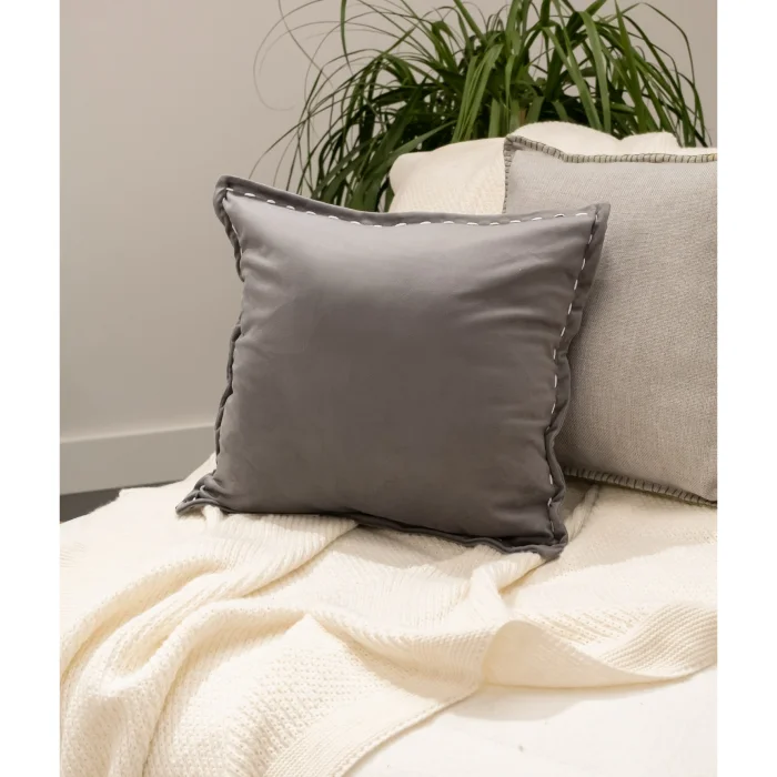 Featuring a natural Anthracite tone and luxurious velvet texture, this stylish pillow is handily designed with a size of 43x43 cm. Solve your décor and comfort needs with this pillow, ideal for those looking for both comfort and elegance in their living space. The pillow's calm and natural tone allows it to blend seamlessly into any environment, making it a versatile addition to your décor. Beautify your space with the simple and modern look of your pillow and add a sophisticated touch to your living spaces. It is suitable for use in many different areas such as bedrooms, living rooms, workspaces and offices. Ideal for sofas and armchairs. This pillow is an important complement as it provides a comfortable space to relax while enhancing the overall aesthetics of your living spaces. Note: Actual colors may differ depending on lighting and monitor settings.