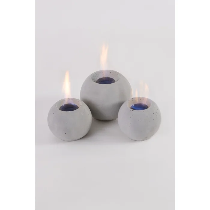 Inferno 3-Piece Grey Fire Pit 6274 Inferno 3-Piece Grey Fire Pit creates an impressive work of art despite its compact dimensions with its modern lines as Large 12cm Diameter / 10 Cm height 1 Piece, and Small ones as 10cm Diameter / 8cm height 2 Pieces. This creative fire pit combines warmth and creativity inside your home. The Inferno Fire Pit offers an aesthetic and functional design suitable for indoor use. An environmentally friendly option with its modern lines and bioethanol fuel system. The fire pit, which is completely handcrafted, does not produce soot, smoke and odor Its water-repellent outer surface provides long-lasting use. This fire pit is ideal for those who want to create an elegant atmosphere by bringing warmth into your home on cold days. The minimally designed circular fire pit model suitable for indoor use has a bioethanol fuel system. It comes with fuel which you can supply in 1 liter. When you fill the entire chamber, it can burn continuously between 30-60 minutes, depending on the size. It is produced from a mixture of lightweight concrete and natural stone. It is made of first-class materials and can be used for a long time. Product Content: LARGE 12 CM DIAMETER / 10 CM HEIGHT -1 NAME SMALLS 10 CM DIAMETER / 8 CM HEIGHT-2 AD 1 LT BIOETHONEL
