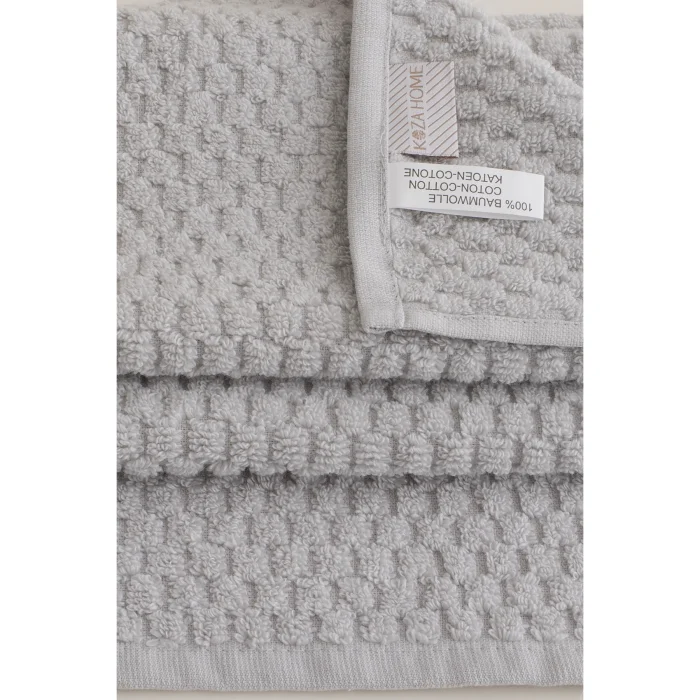 high-quality towel set with 100% cotton and microfiber absorbency stands out with its embossed weave. The color palette in pastel shades adapts to different decorations. Solid color weaving creates a simple elegance. With white, gray, salmon, beige, lilac and blue color options, it offers unique options that will appeal to all tastes. It is ideal for drying with 2 hand face towels of 50x90 size. It offers a soft and comfortable use, rests with the comfort of natural cotton. It offers a quality appearance with its high-quality glossy touch. Thanks to its absorbent structure and microfiber feature, it provides a good drying experience and dries quickly. Be sure to wash it in the washing machine at 30°. Do not use bleach and bleach detergents. To maintain the quality of the fabric, avoid washing it with harsh chemicals such as bleach or alcohol. Lay-out drying is recommended. Note: Actual colors may differ depending on lighting and monitor settings.