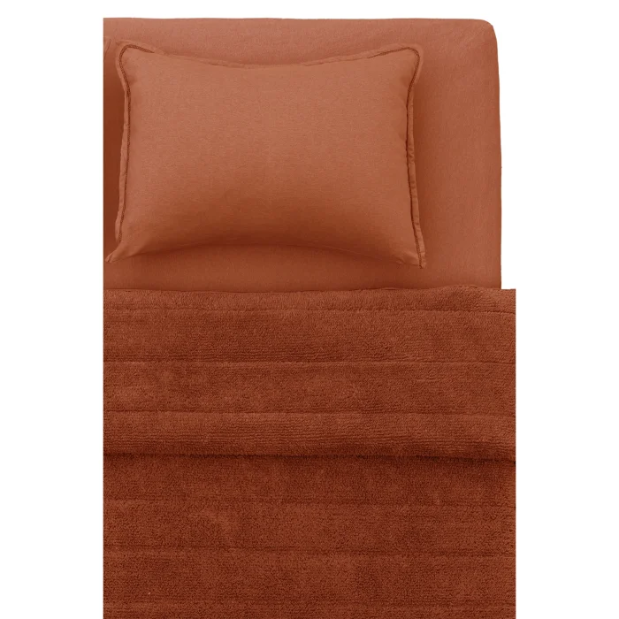 Koza Lun Tile Bedspread Set Double 9083 230 x 240 Lun Bedspread Set is designed to add an elegant atmosphere to your bedroom and balance elegance. Enriched with beige, gray, indigo and tile color options, this set has a size of 230x240 cm, ideal for double beds. It also includes a 160x200x36 cm fitted sheet and 2 50x70 pillowcases, offering a complete set of mattress dressings. Lun Bedspread Set combines elegance and comfort in bedroom decoration with its simple and minimalist design. It offers an excellent option for those looking for aesthetics and functionality, while at the same time providing a soft and peaceful sleep experience with its 100% polyester content. By renovating your bedroom, it allows you to forget your daily stress and fall into a comfortable night's sleep. Made from high-quality cotton weave, this duvet cover set promises both durability and a luxurious feel on your skin. The vibrant color palette radiates energy, creating a serene atmosphere that promotes relaxation and peaceful sleep.  The bedspread is 100% Polyester Sheet and pillowcase is 50% Cotton and 50% Polyester.   Care Recommendation It is recommended to wash at 30 degrees. To maintain the quality of the fabric, avoid washing it with harsh chemicals such as bleach or alcohol. Bleaching should not be done. It does not require ironing. Lay-out drying is recommended. During the drying process, avoid exposure to direct sunlight to avoid possible fabric damage. Dry cleaning should not be applied. Note: Actual colors may differ depending on lighting and monitor settings.