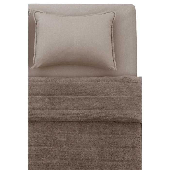 The Lun Bedspread Set is designed to add an elegant atmosphere to your bedroom and balance elegance. Enriched with beige, gray, indigo and tile color options, this set has a size of 230x240 cm, ideal for double beds. It also includes a 160x200x36 cm fitted sheet and 2 50x70 pillowcases, offering a complete set of mattress dressings. Lun Bedspread Set combines elegance and comfort in bedroom decoration with its simple and minimalist design. It offers an excellent option for those looking for aesthetics and functionality, while at the same time providing a soft and peaceful sleep experience with its 100% polyester content. By renovating your bedroom, it allows you to forget your daily stress and fall into a comfortable night's sleep. Made from high-quality cotton weave, this duvet cover set promises both durability and a luxurious feel on your skin. The vibrant color palette radiates energy, creating a serene atmosphere that promotes relaxation and peaceful sleep.  The bedspread is 100% Polyester Sheet and pillowcase is 50% Cotton and 50% Polyester.   Care Recommendation It is recommended to wash at 30 degrees. To maintain the quality of the fabric, avoid washing it with harsh chemicals such as bleach or alcohol. Bleaching should not be done. It does not require ironing. Lay-out drying is recommended. During the drying process, avoid exposure to direct sunlight to avoid possible fabric damage. Dry cleaning should not be applied. Note: Actual colors may differ depending on lighting and monitor settings.