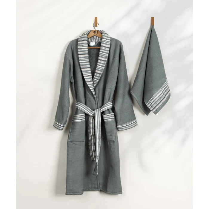 Limira Set of 2 Cotton (1 Bathrobe, 1 Towel) will be your best bathing companion. Made from cotton fabric with a honeycomb texture for a luxurious feel. Includes 1 bathrobe and 50x90 towels for a comprehensive bathing experience. Pastel-toned and relaxing colors are available to suit your preference. The set features a minimalist design for a timeless look. It offers a quality that enhances your bathing pleasure. Thanks to its water-absorbent fabric structure, it provides efficient drying. It's designed for quick drying, ensuring you're ready to conquer the day. Its honeycomb texture, meticulous design and water-absorbent fabric promise a unique bathing experience. Say goodbye to humidity and hello to comfort. It is recommended to wash at 30 degrees. To maintain the quality of the fabric, avoid washing it with harsh chemicals such as bleach or alcohol. Bleaching should not be done. It does not require ironing. Lay-out drying is recommended. During the drying process, avoid exposure to direct sunlight to avoid possible fabric damage. Note: Actual colors may differ depending on lighting and monitor settings.