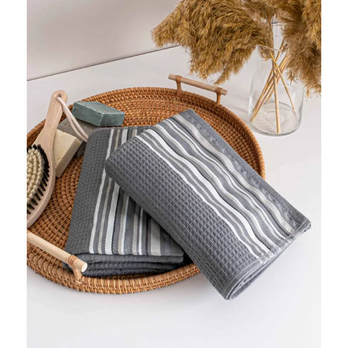 It stands out with its embossed cotton fabric and linear tonal transitions. The color palette in pastel shades adapts to different decorations. With its 50x90 dimensions, it is ideal for hand and face drying. It offers a soft and comfortable use, rests with the comfort of natural cotton. It provides a stylish appearance and functional use in your bathrooms. Thanks to its absorbent structure, it provides a good drying experience and dries quickly. Be sure to wash it in the washing machine at 30°. Do not use bleach and bleach detergents Avoid washing with harsh chemicals such as bleach or alcohol to maintain the quality of the fabric. Lay-out drying is recommended. During the drying process, avoid exposure to direct sunlight to avoid possible fabric damage. Note: Actual colors may differ depending on lighting and monitor settings.