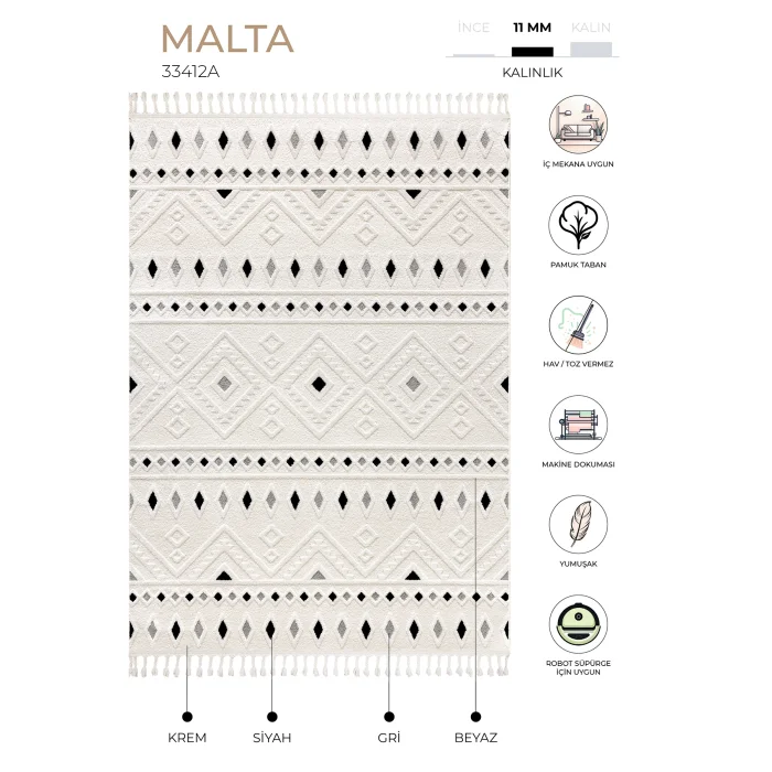 MALTA We are here with the Malta Collection, the versatile complement to your living spaces. The Maltese carpet, which has a thickness of 11mm and high quality polyester content, has a cotton base coating that increases strength. The Malta Collection is carefully designed with soft color options and calm linear patterns that complement any décor. Our Malta series, where Scandinavian lines meet the balanced spirit of the beach, was created with luxurious looks of peaceful neutral colors. It has a rich product range with different size and color options. Ideal for those looking for decoration, comfort and elegance in their living spaces. It is suitable for indoor use in the living room, living room and bedroom. The carpet blends perfectly into any environment with its soft tones of cream color. This rug brings dynamism and freshness to your room, while at the same time creating a luminous accent on the floor. With its stylish design and high-quality materials, it provides a visually pleasing appearance and offers a long-lasting use. Beautify your space with its minimalist and modern look by creating an elegant and stylish environment. Enrich your décor, comfort and ambiance with Malta, designed to add style to your living spaces. It does not cause dusting and pilling. It can be washed in the carpet cleaning service. It is not recommended to use bleach and heavy chemicals. Damp cloth and carpet cleaner can be used for stain care. It is suitable for robot vacuum cleaner. Note: Actual colors may differ depending on lighting and monitor settings, and there may be a difference of up to 5% in the size of carpets due to the variety of yarn produced and used. 80x80 100x100 120x120 160x160 200x200 Sizes are round carpets.