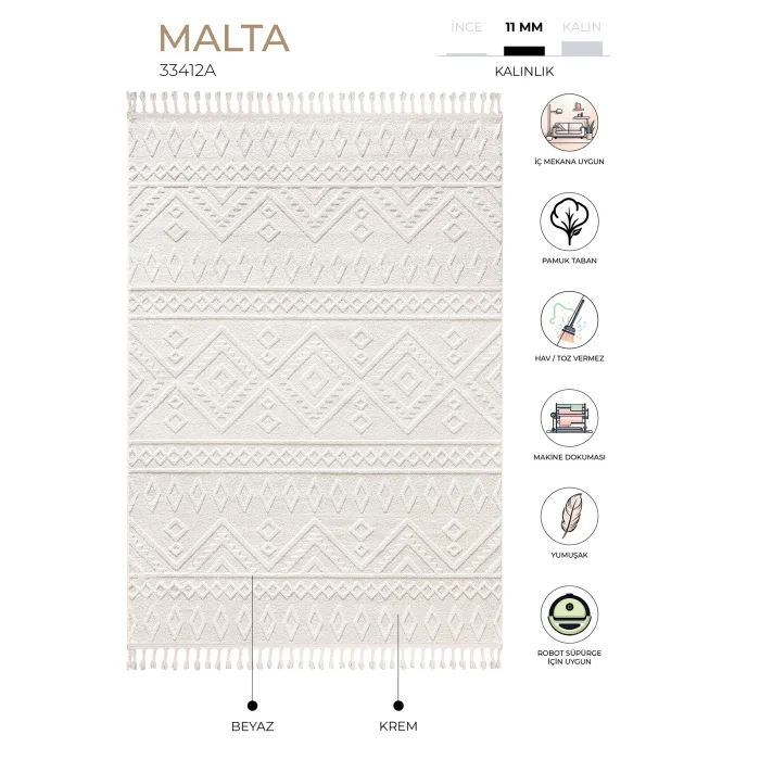 MALTA We are here with the Malta Collection, the versatile complement to your living spaces. The Maltese carpet, which has a thickness of 11mm and high quality polyester content, has a cotton base coating that increases strength. The Malta Collection is carefully designed with soft color options and calm linear patterns that complement any décor. Our Malta series, where Scandinavian lines meet the balanced spirit of the beach, was created with luxurious looks of peaceful neutral colors. It has a rich product range with different size and color options. Ideal for those looking for decoration, comfort and elegance in their living spaces. It is suitable for indoor use in the living room, living room and bedroom. The carpet blends perfectly into any environment with its soft tones of cream color. This rug brings dynamism and freshness to your room, while at the same time creating a luminous accent on the floor. With its stylish design and high-quality materials, it provides a visually pleasing appearance and offers a long-lasting use. Beautify your space with its minimalist and modern look by creating an elegant and stylish environment. Enrich your décor, comfort and ambiance with Malta, designed to add style to your living spaces. It does not cause dusting and pilling. It can be washed in the carpet cleaning service. It is not recommended to use bleach and heavy chemicals. Damp cloth and carpet cleaner can be used for stain care. It is suitable for robot vacuum cleaner. Note: Actual colors may differ depending on lighting and monitor settings, and there may be a difference of up to 5% in the size of carpets due to the variety of yarn produced and used. 80x80 100x100 120x120 160x160 200x200 Sizes are round carpets.