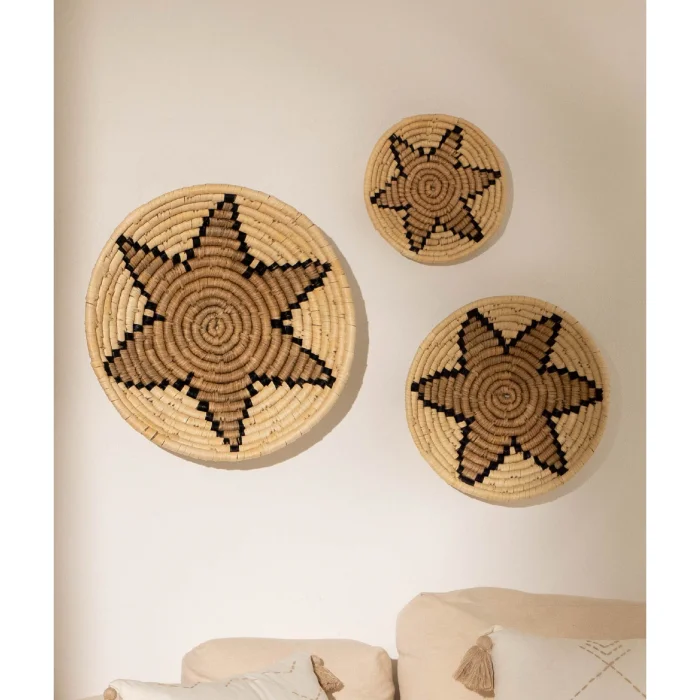 Meander Natural Bamboo African Handmade Star Wall Plate Decor 25x5cm Meet the Meander Natural Bamboo African Handmade Star Wall Plate Decor. The representative of the bohemian style in your home! Beautify your living spaces with the Meander Natural Bamboo Afrikan Handmade Star Wall Plate Decor, a masterpiece that effortlessly embodies bohemian charm and artistic elegance. This carefully crafted wall plate showcases a fascinating blend of natural and brown tones in 25x5 / 30 / 40 / 50 cm sizes. It makes a stunning addition to your home, balcony or garden. The perfect combination of natural and brown adds a chic bohemian vibe to any setting. Handmade from bamboo, the plate showcases intricate design, meticulous artistry, and the organic texture of natural materials. Infuse your space with the free spirit of boho, bring creativity and artistic expression to your surroundings. With its captivating design, the wall plate effortlessly transforms any space, enhancing your aesthetic vision. Whether it's adorning your indoor walls, balcony, or garden, this wall plate resonates with those who appreciate the charm of unique, handmade pieces. Customize your space with the effortless touch of beauty of bohemian style. Note: The natural texture of the wicker can lead to slight differences in color and pattern, increasing the unique appeal of each range.