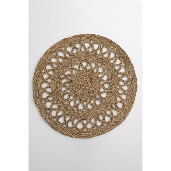 Product: Meander Handmade Natural Lace Patterned Seaweed Round Rug