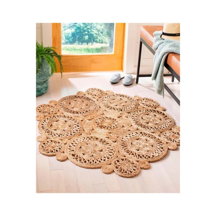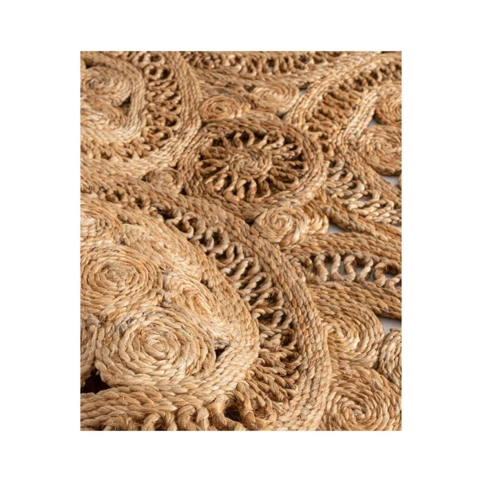 NATURA Jute is handloom-made in India from natural jute fibers. Jute carpets are hand-woven, special carpets produced from natural yarn that suit almost any style of decoration. It is recyclable, does not harm the ecological balance and is environmentally friendly. It is durable and unaffected by time, currents and trend wear. Its circular form adds movement to the space, and it has the appearance of a flower thanks to the proportional growing circle pieces. Size options such as 150 cm, 120 cm and 90 cm are available. Natura Carpet features a minimal, modern flat-weave design that complements any décor. It is suitable for both indoor and outdoor use, is resistant to UV rays, resistant to moisture and mildew, and is easy to clean and maintain. Ideal for those looking for decoration, comfort and elegance in their living spaces. It's perfect for outdoors, gardens, and any space where you need durable and stylish floor coverings. The carpet blends seamlessly into any environment with its calm and natural tone. Beautify your space with its minimalist and modern look by creating an elegant and stylish environment. Due to the natural state of the plants, color differences, color transitions, spots and various differences in the body of the plant are reflected in the product as it is. Again, there may inevitably be plus/minus differences in very small dimensions in the measurement of handmade products. It should be wiped with a damp cloth. Note: Actual colors may differ depending on lighting and monitor settings.
