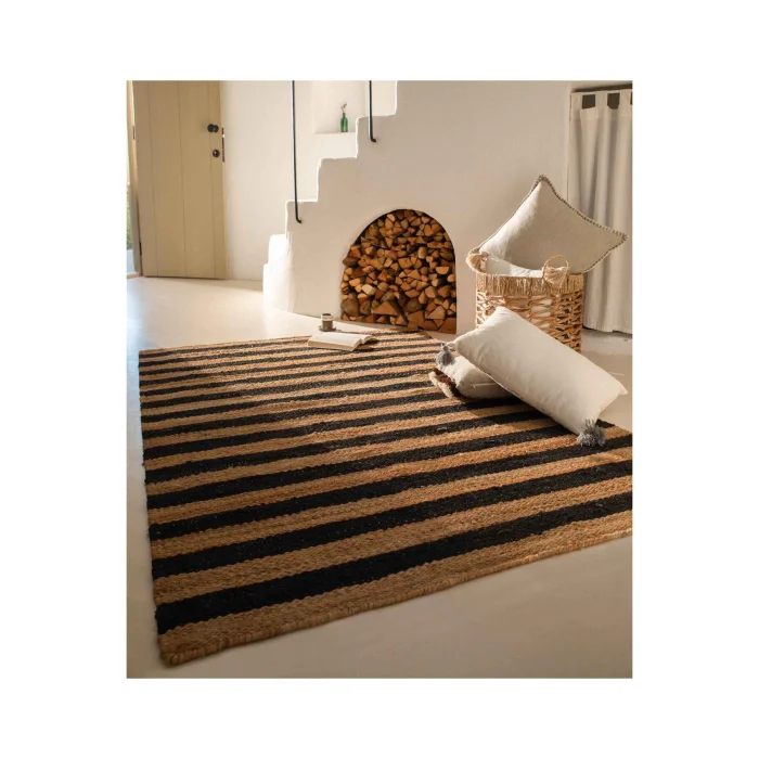 NATURA Jute is handloom-made in India from natural jute fibers. Jute carpets are hand-woven, special carpets produced from natural yarn that suit almost any style of decoration. It is recyclable, does not harm the ecological balance and is environmentally friendly. It is durable and unaffected by time, currents and trend wear. It brings the simplicity of natural textures to the environment with its plain weaving details consisting of the perfect harmony of warm and cold tones of natural jute. Its weaving in a linear form exhibits the harmony of black and natural jute. Size options such as 90x150, 120x180, 160x240 and 200x290 cm are available. Natura Carpet features a minimal, modern flat-weave design that complements any décor. It is suitable for both indoor and outdoor use, is resistant to UV rays, resistant to moisture and mildew, and is easy to clean and maintain. Ideal for those looking for decoration, comfort and elegance in their living spaces. It's perfect for outdoors, gardens, and any space where you need durable and stylish floor coverings. The carpet blends seamlessly into any environment with its calm and natural tone. Beautify your space with its minimalist and modern look by creating an elegant and stylish environment. Due to the natural state of the plants, color differences, color transitions, spots and various differences in the body of the plant are reflected in the product as it is. Again, there may inevitably be plus/minus differences in very small dimensions in the measurement of handmade products. It should be wiped with a damp cloth. Note: Actual colors may differ depending on lighting and monitor settings.