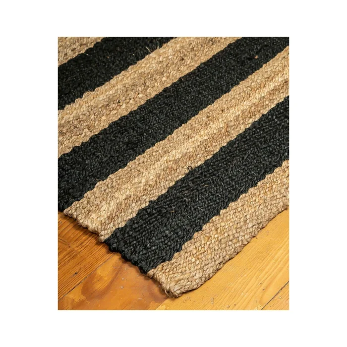 NATURA Jute is handloom-made in India from natural jute fibers. Jute carpets are hand-woven, special carpets produced from natural yarn that suit almost any style of decoration. It is recyclable, does not harm the ecological balance and is environmentally friendly. It is durable and unaffected by time, currents and trend wear. It brings the simplicity of natural textures to the environment with its plain weaving details consisting of the perfect harmony of warm and cold tones of natural jute. Its weaving in a linear form exhibits the harmony of black and natural jute. Size options such as 90x150, 120x180, 160x240 and 200x290 cm are available. Natura Carpet features a minimal, modern flat-weave design that complements any décor. It is suitable for both indoor and outdoor use, is resistant to UV rays, resistant to moisture and mildew, and is easy to clean and maintain. Ideal for those looking for decoration, comfort and elegance in their living spaces. It's perfect for outdoors, gardens, and any space where you need durable and stylish floor coverings. The carpet blends seamlessly into any environment with its calm and natural tone. Beautify your space with its minimalist and modern look by creating an elegant and stylish environment. Due to the natural state of the plants, color differences, color transitions, spots and various differences in the body of the plant are reflected in the product as it is. Again, there may inevitably be plus/minus differences in very small dimensions in the measurement of handmade products. It should be wiped with a damp cloth. Note: Actual colors may differ depending on lighting and monitor settings.