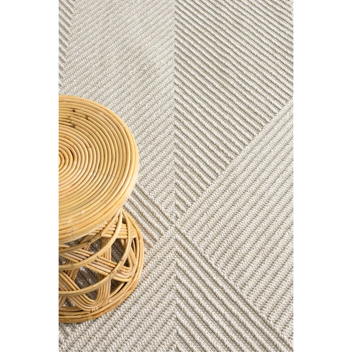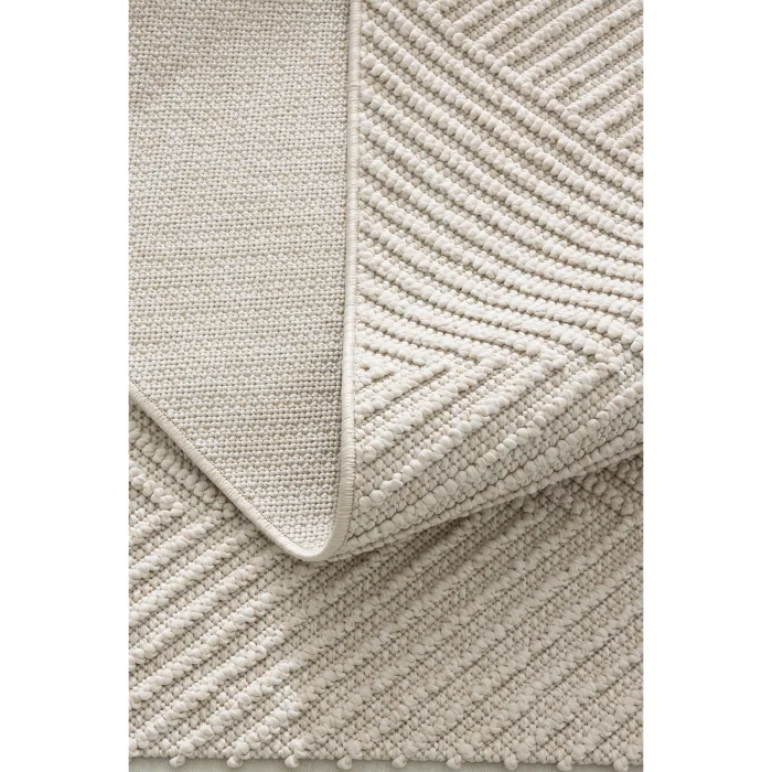 - The rug blends seamlessly into any environment with its soft tones of cream and beige.