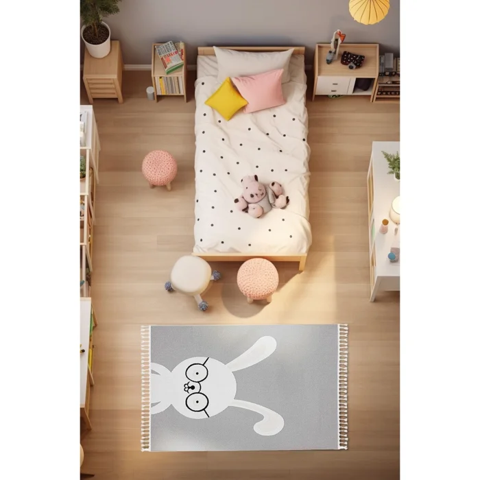 SPARKLE CHILDREN'S RUG Sparkle Grey Cream Rabbit Figure Animal Figure Children's Room Rug Where Imagination Takes Action! Ignite your child's imagination with the Sparkle Cream Grey Giraffe Figure Animal Figure Children's Room Rug, a world of wonders woven into each stitch. Measuring 133x190 cm, this rug brings the magic of the wilderness to children's rooms, kindergartens and playrooms. Main Features: Decorated with fascinating figures, the carpet creates a playful atmosphere that stimulates creativity and curiosity. The relaxing combination of cream and grey blends seamlessly into a variety of interiors, offering a neutral backdrop for vibrant young minds. Measuring 133x190 cm, this rug gives children ample space to explore, learn and create their own adventures. Made from high-quality polyester, it offers softness and durability to withstand the thrills of gaming. Animal figures encourage learning, storytelling, and interaction through creative play. Soft and gentle on little feet, this rug provides a comfortable and safe space for kids to play, learn, and bond. Whether in the nursery, kindergarten or playroom, this rug transforms any space into an engaging environment for children. Sparkle Cream Gray Giraffe Animal Children's Room Rug is not just a decorative piece; It is a gateway to discovery, creativity, and growth. Note: Product color may vary depending on lighting settings.