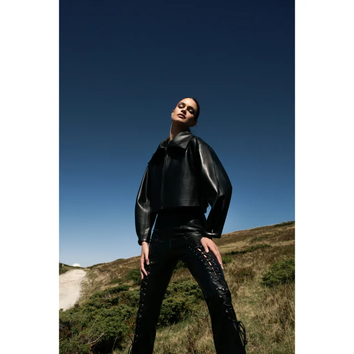 Leather trousers with lace-up detailing.