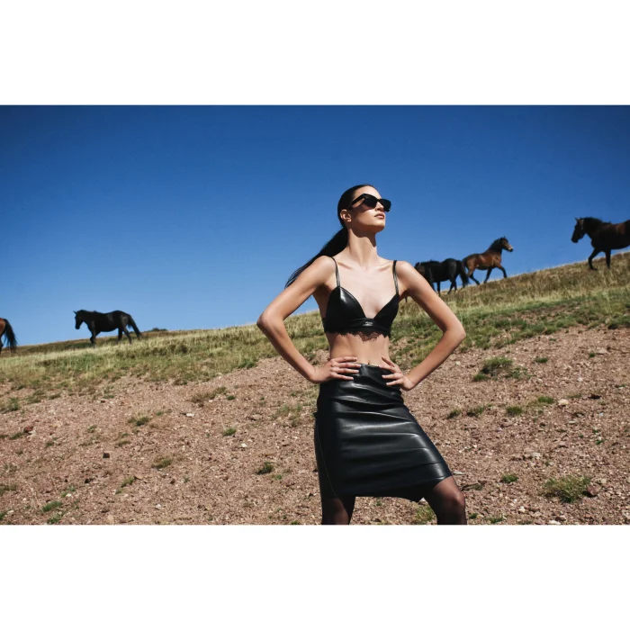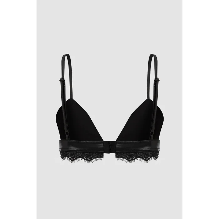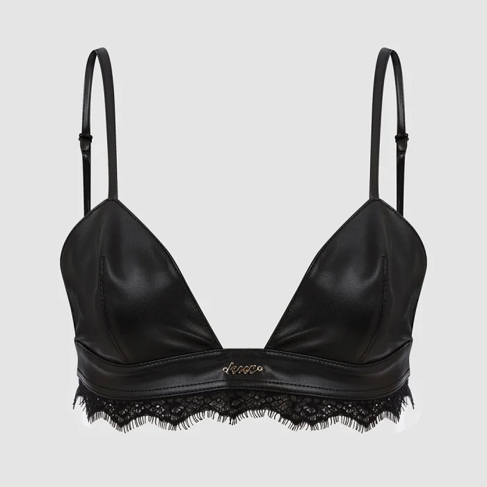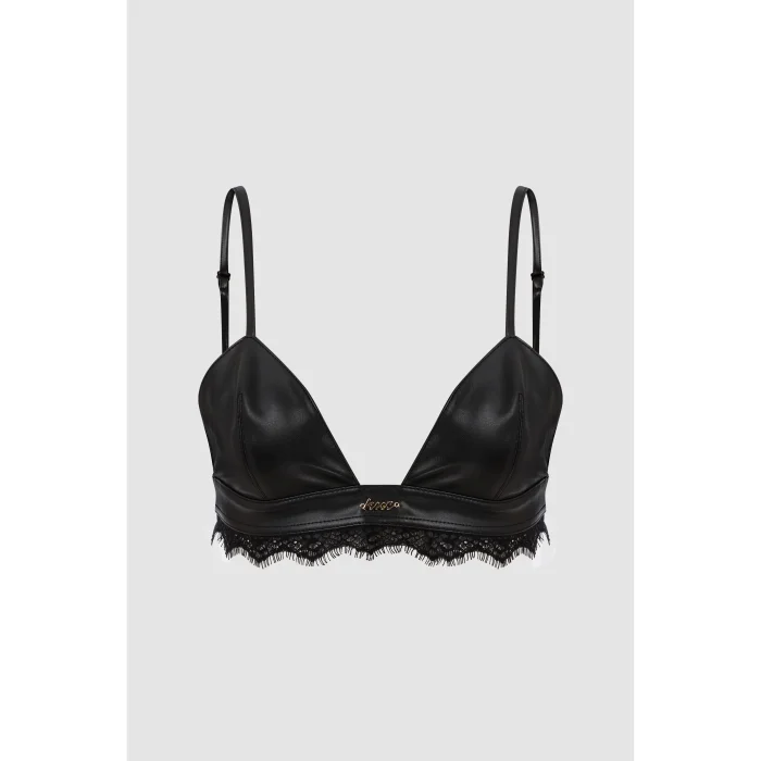 Leather bralette with lace detail.