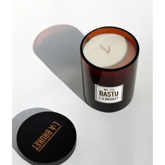 La Bruket's candles are made from organic soy wax. Since soy is processed during the production phase of waxes, it is not considered organic. It is also possible to buy candles as refills. There is a new wick inside