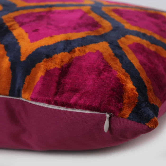 • Hand-woven silk velvet ikat pillow cover made in Istanbul.