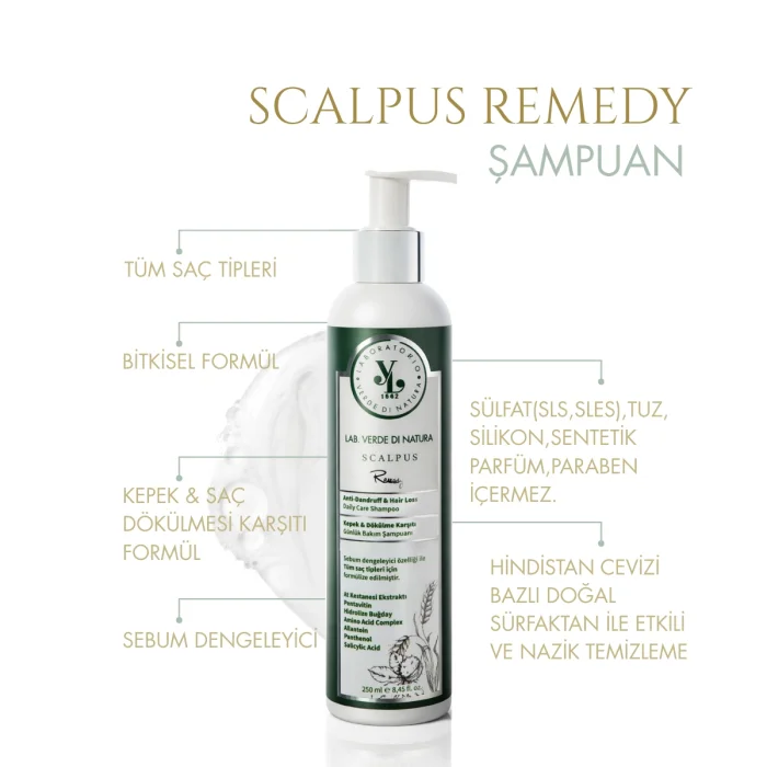SCALPUS REMEDY Shampoo is a purifying and balancing shampoo developed for scalps prone to dandruff, excess oil, and sensitivity.