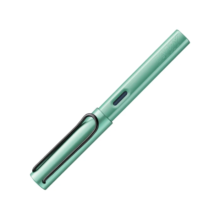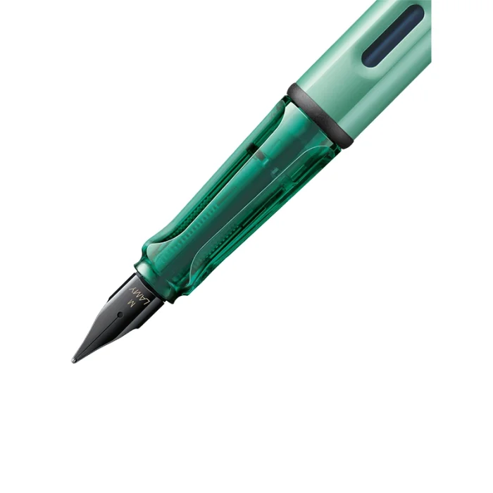 Can be used with LAMY AL-star 2025 Custom-made colour mint, anodized aluminium body / unique flexible metal clip / ergonomic transparent grip / glossy black steel nib / LAMY T10 blue ink cartridge / LAMY Z 28 fountain pen piston